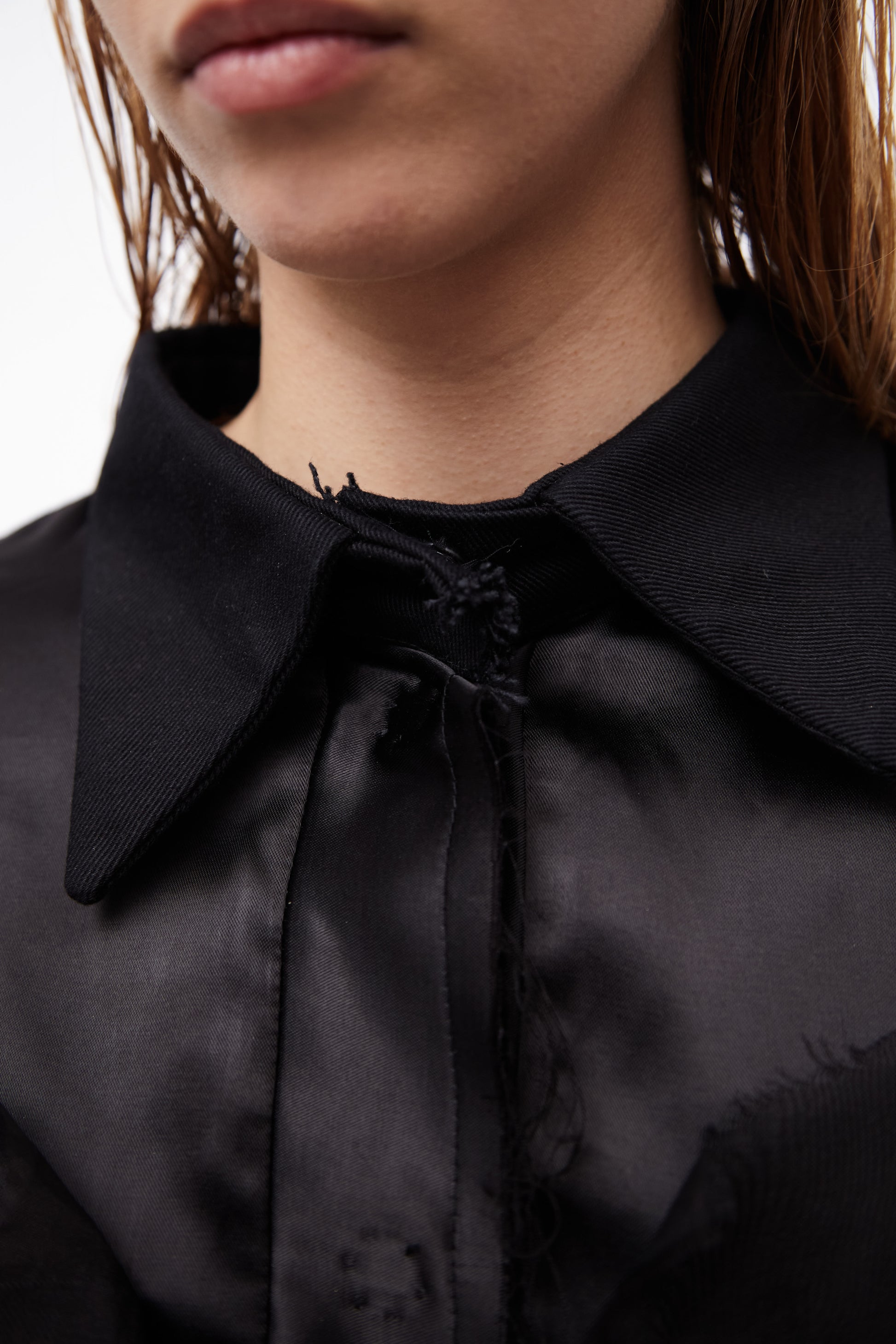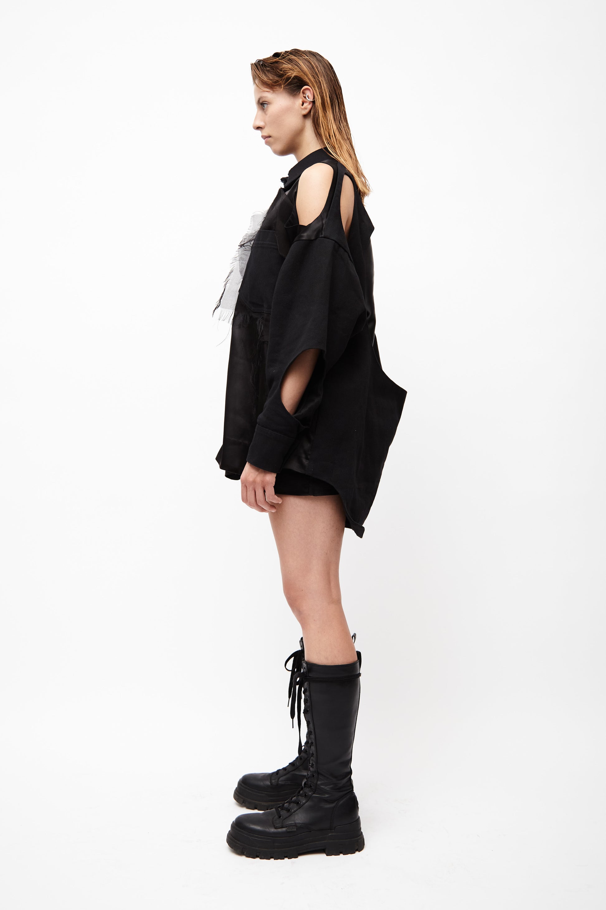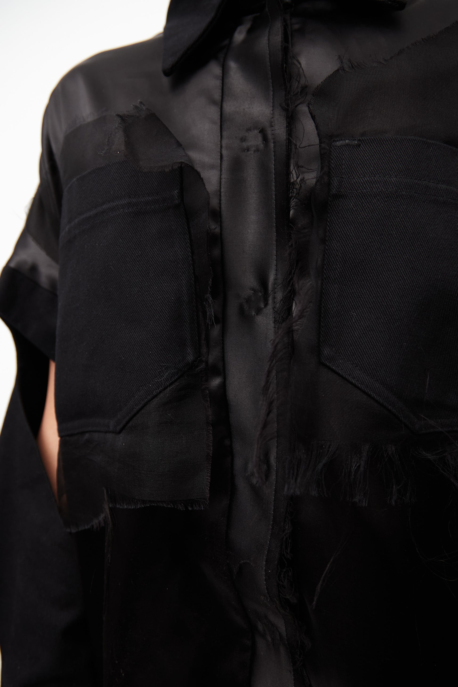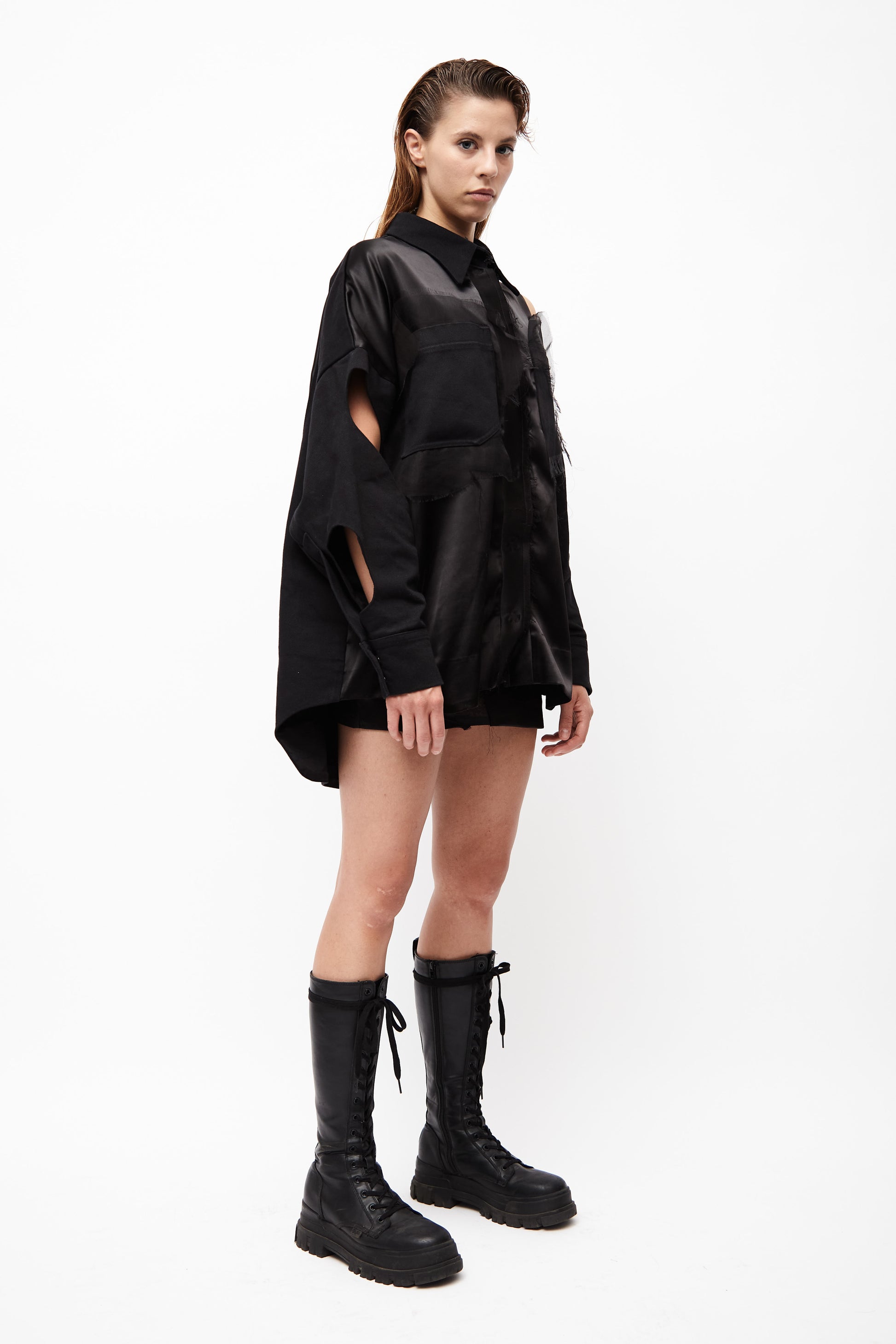 DECONSTRUCTED BLACK COTTON SATEEN SHIRT