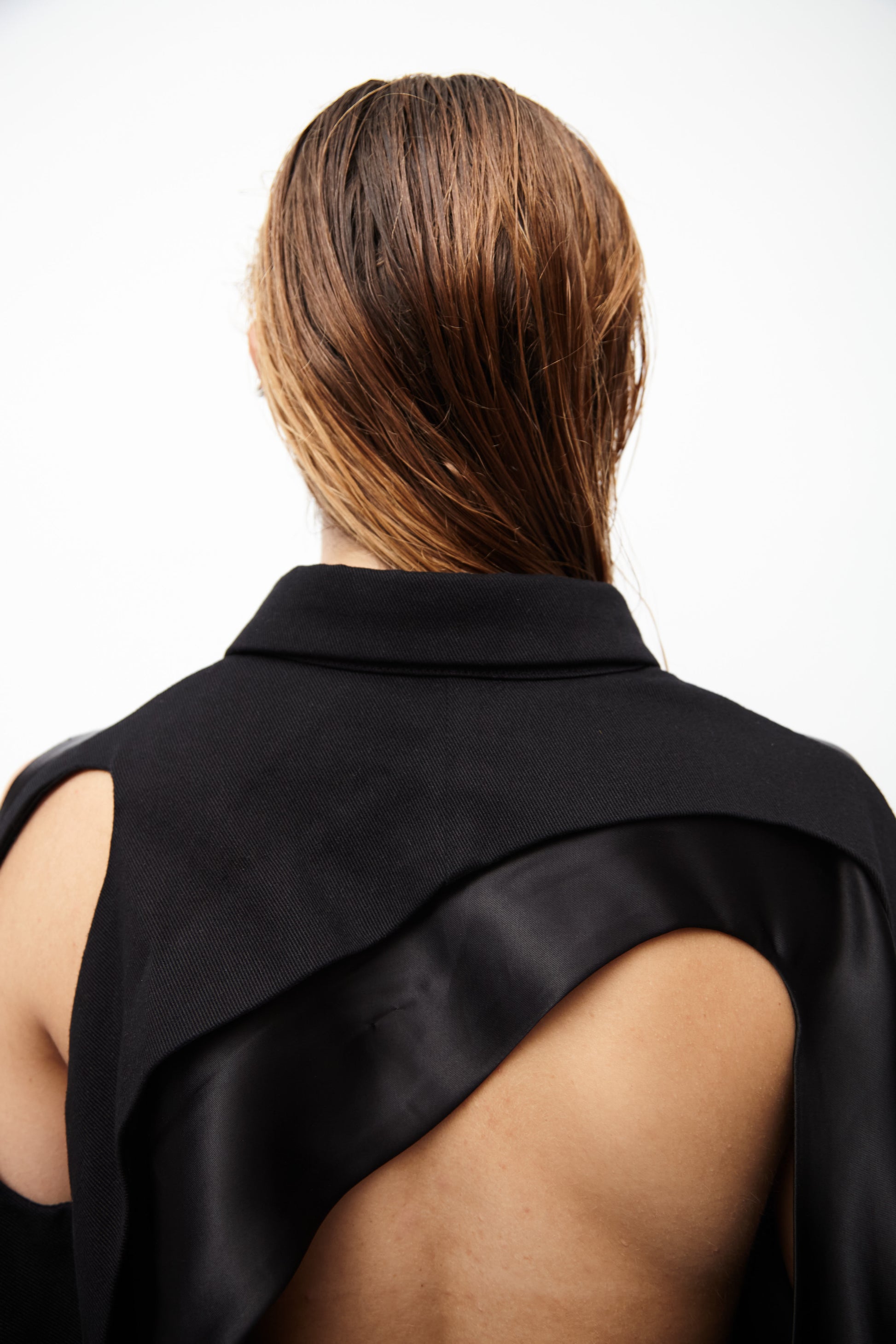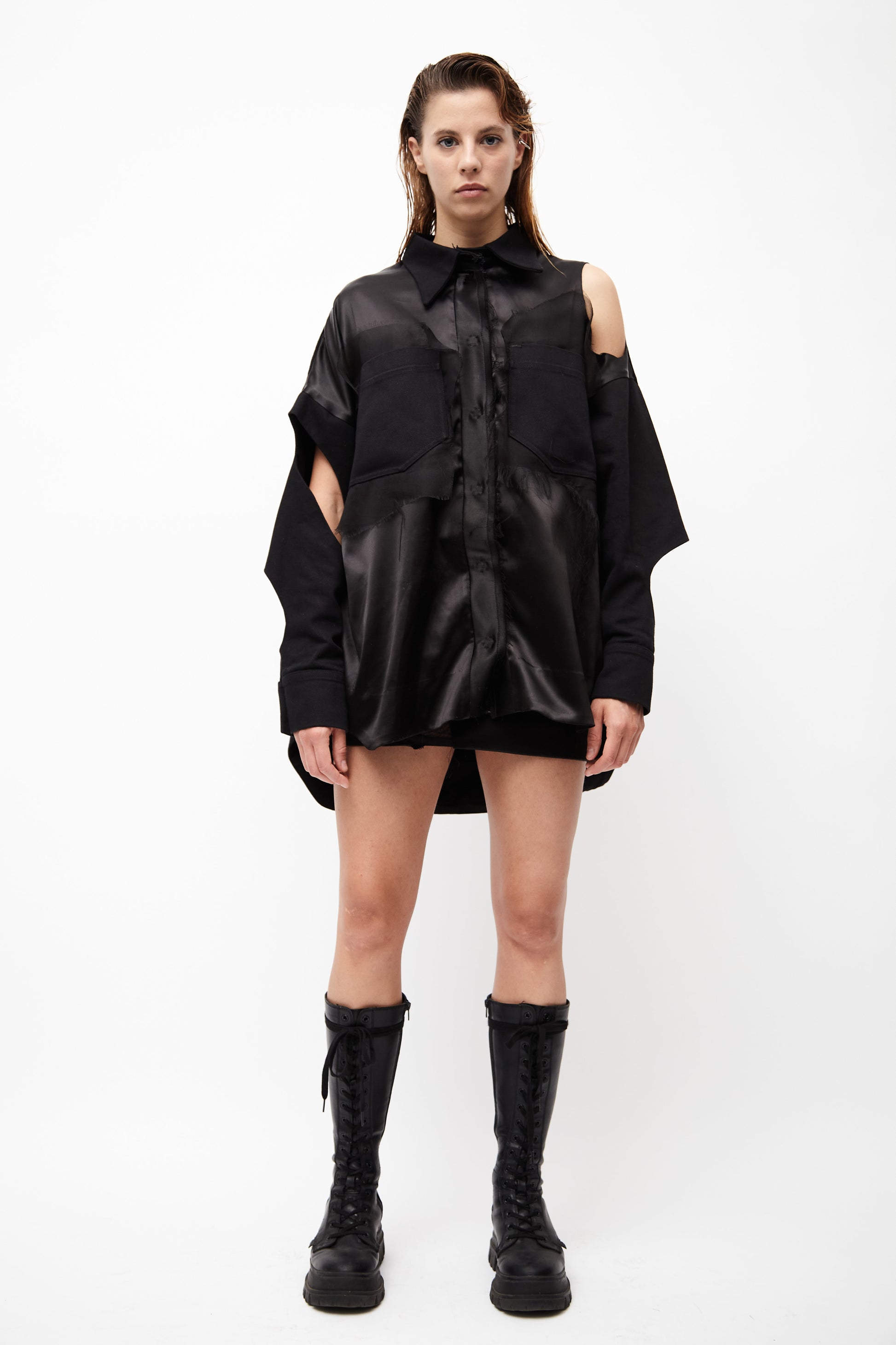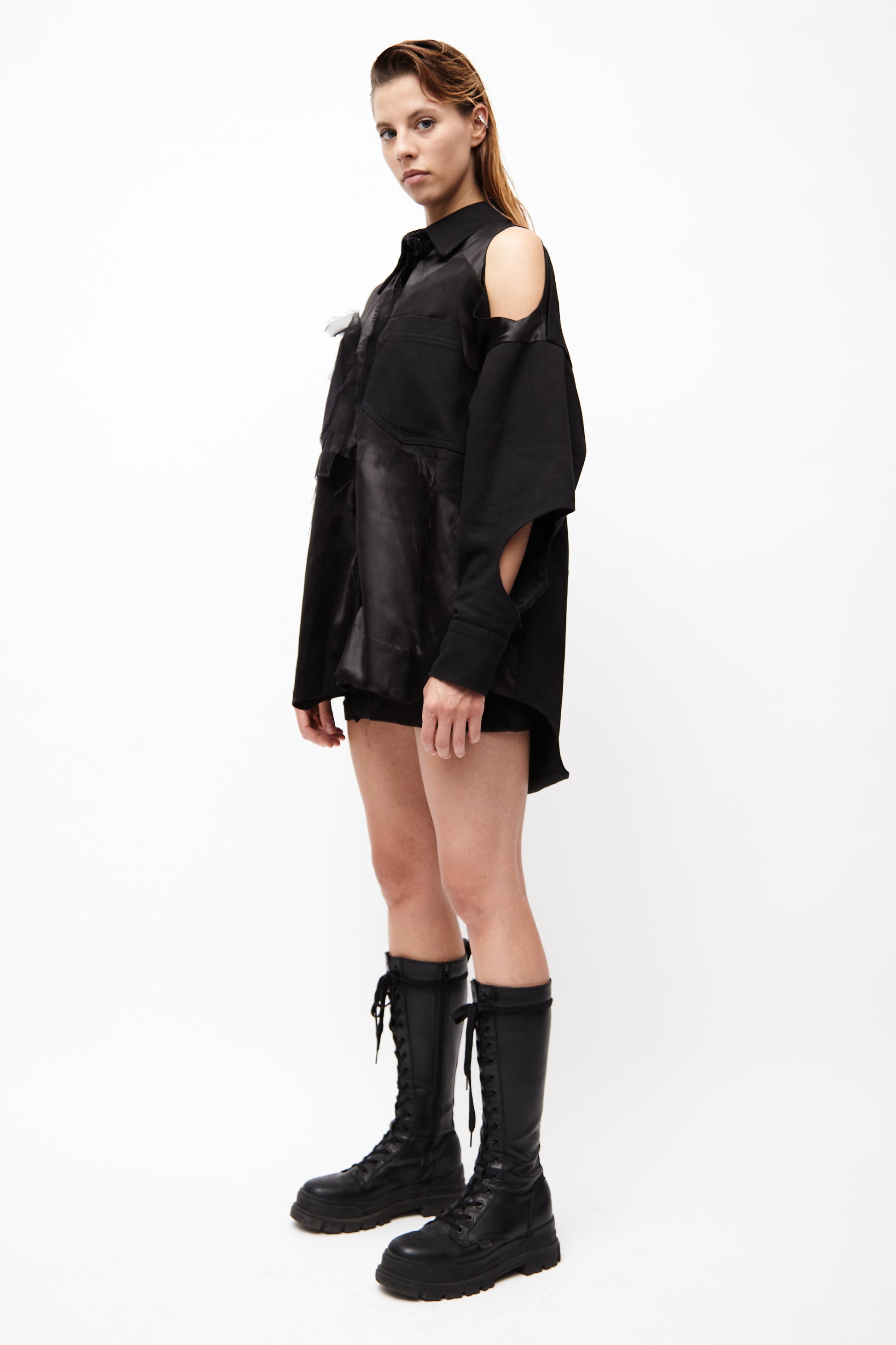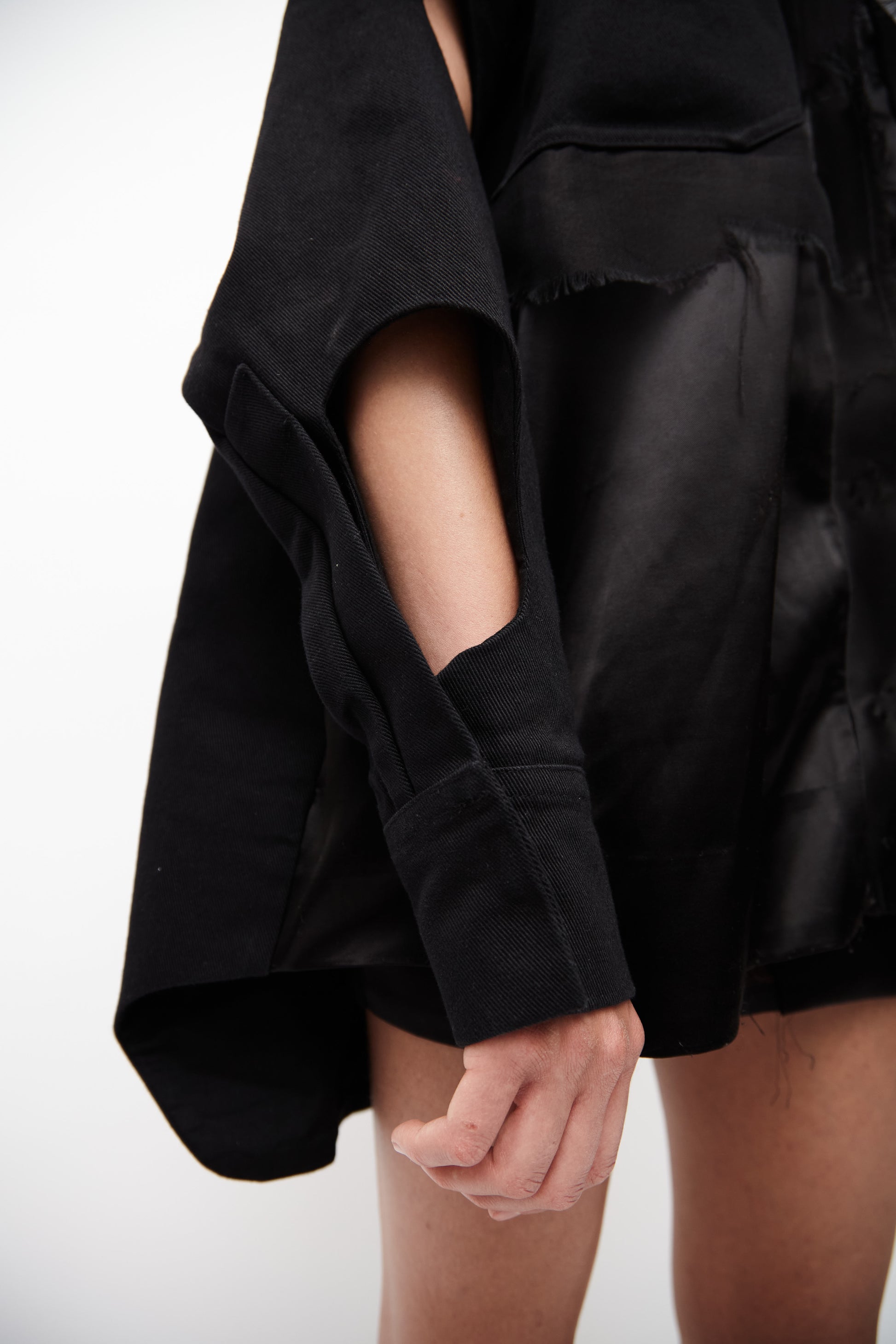 DECONSTRUCTED BLACK COTTON SATEEN SHIRT