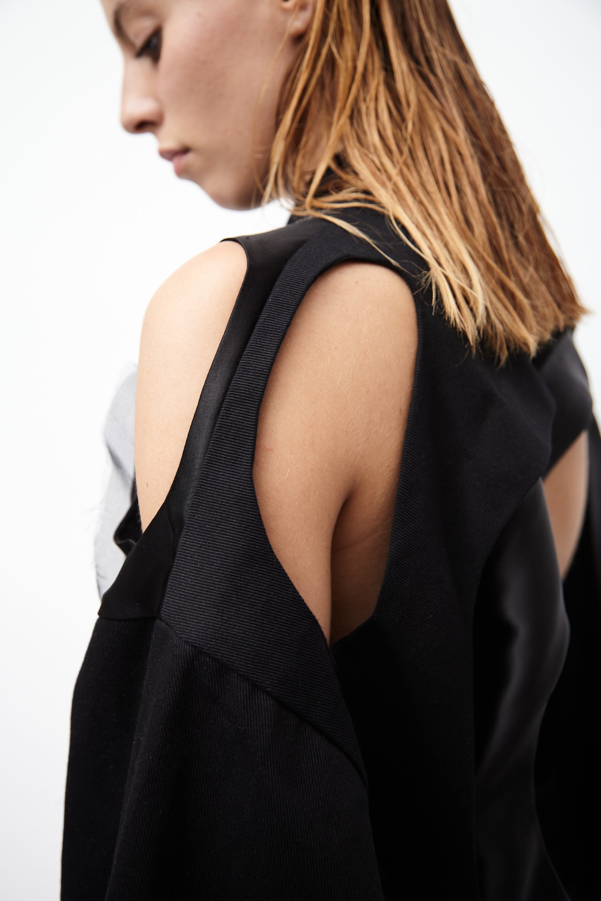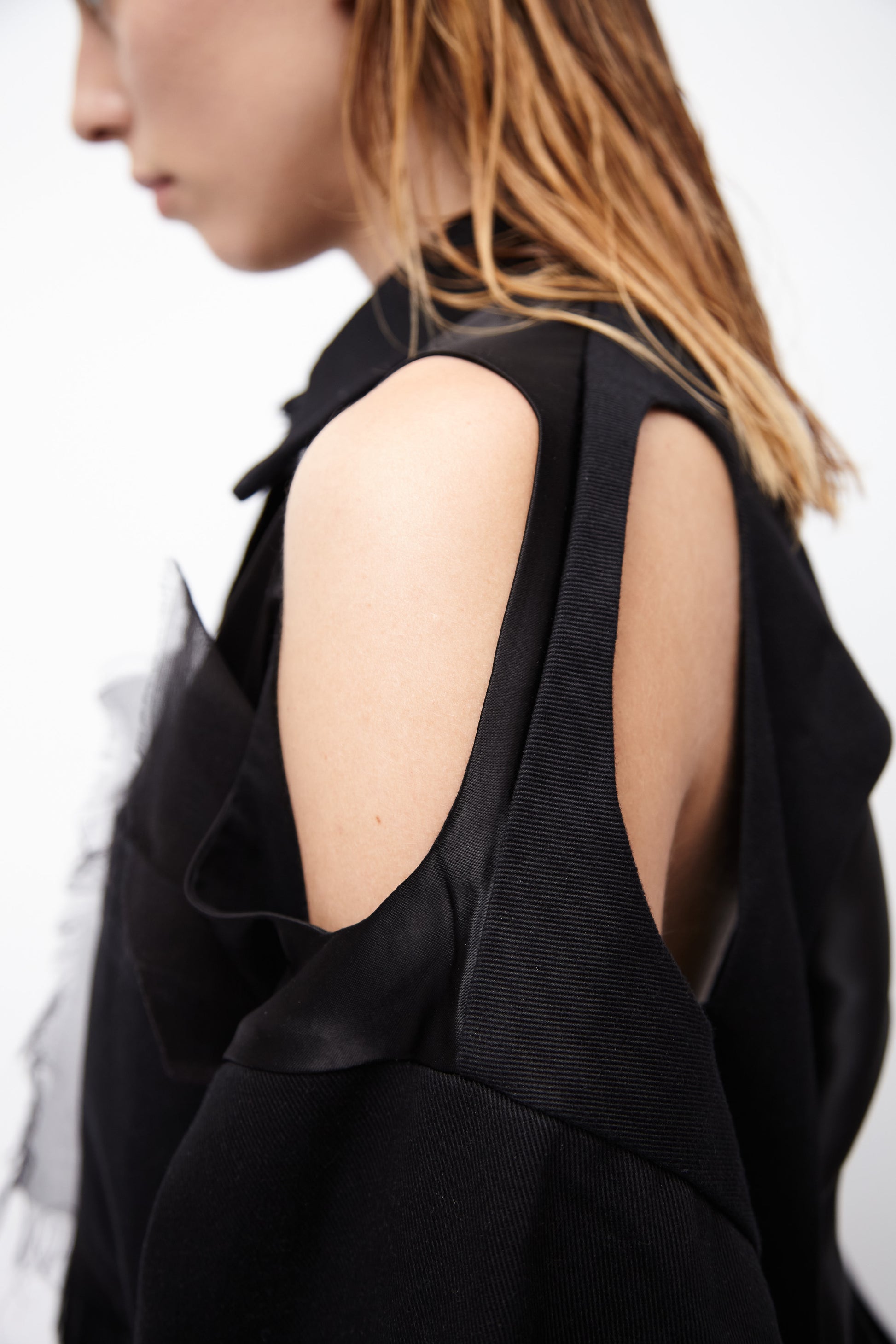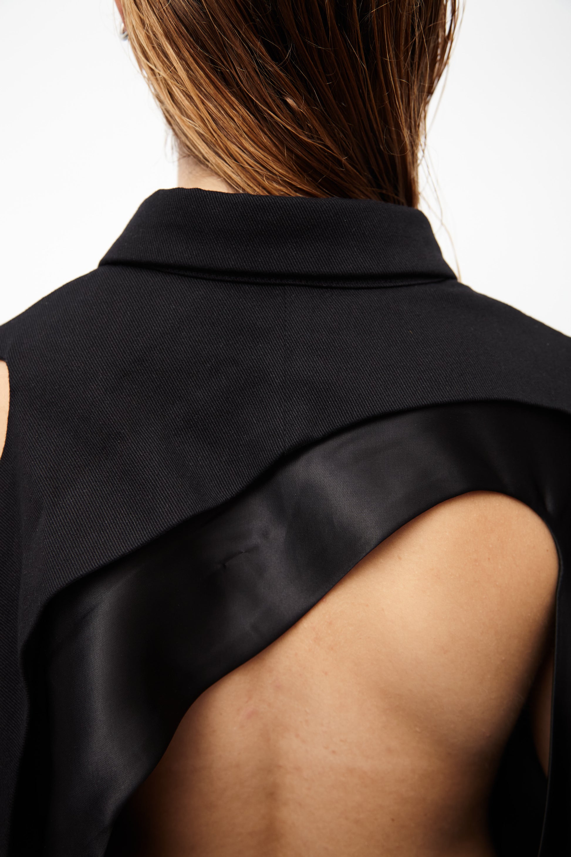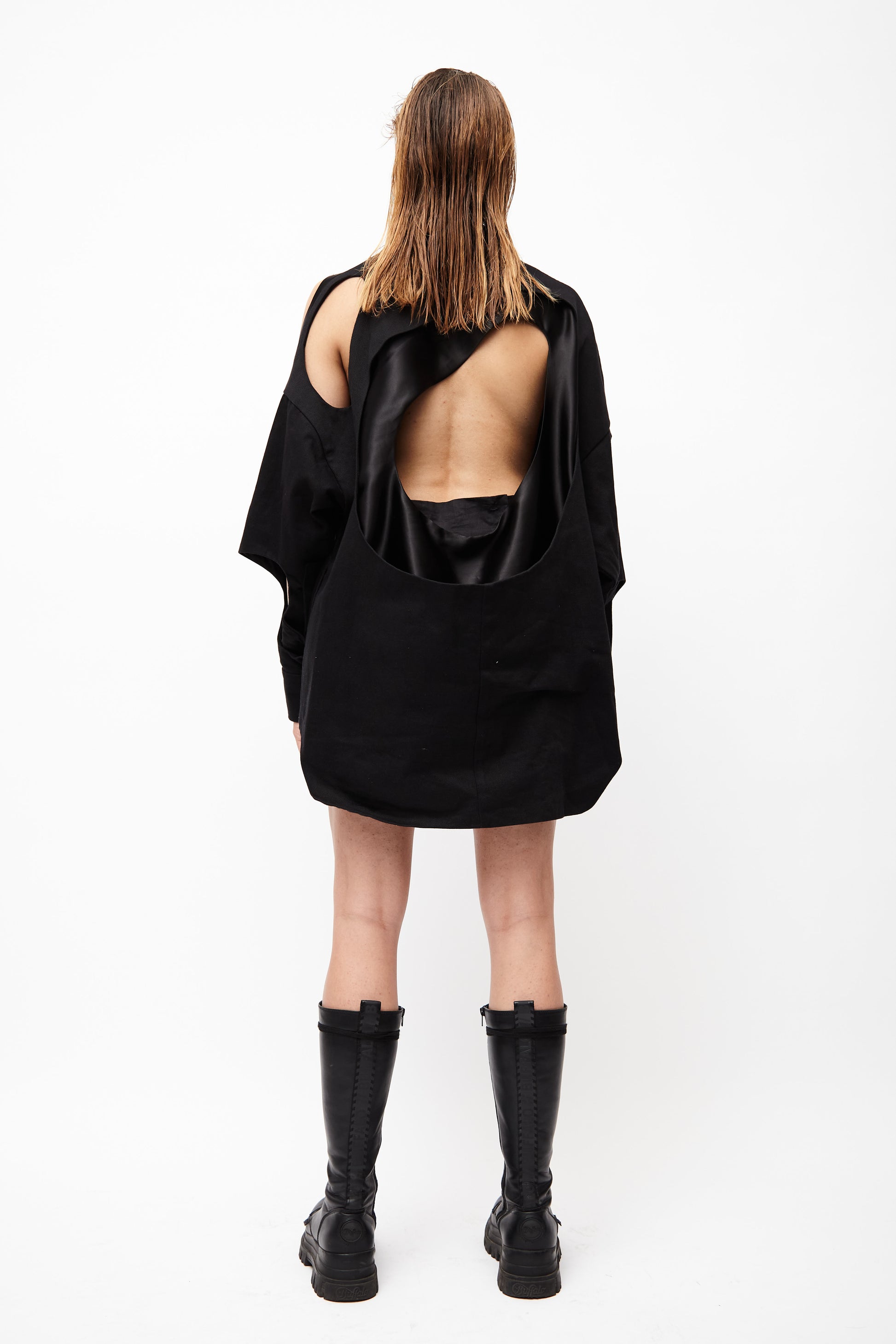 DECONSTRUCTED BLACK COTTON SATEEN SHIRT