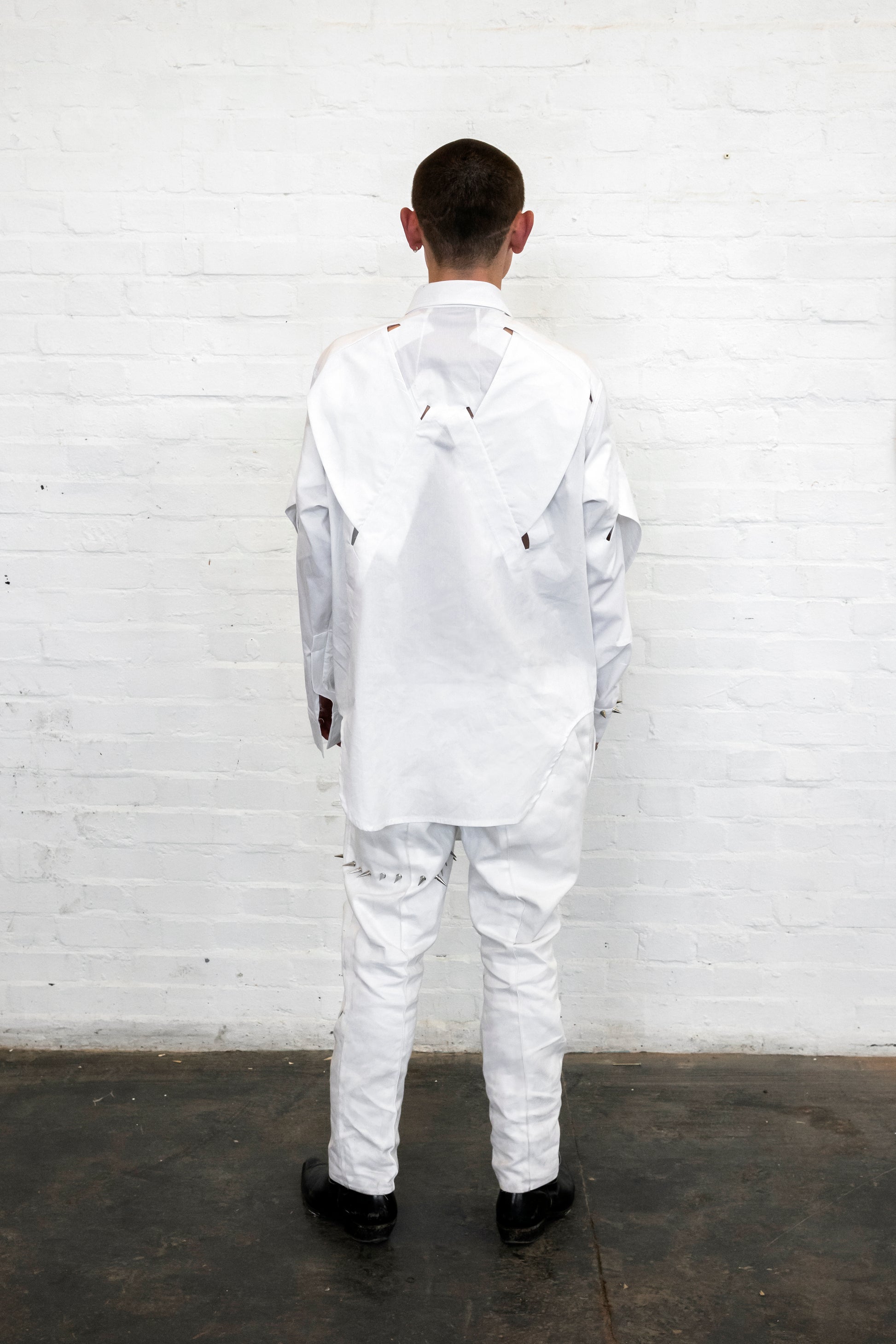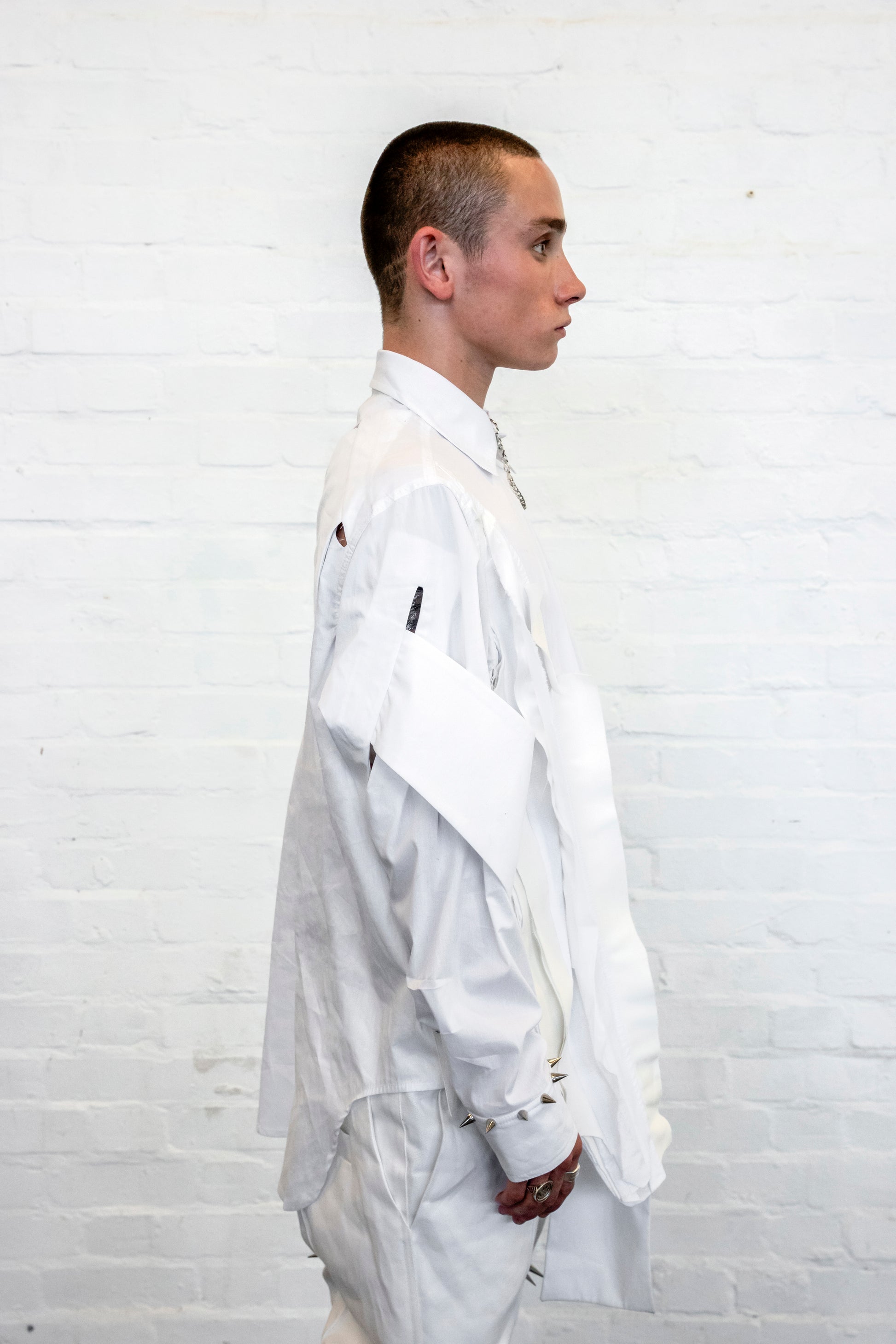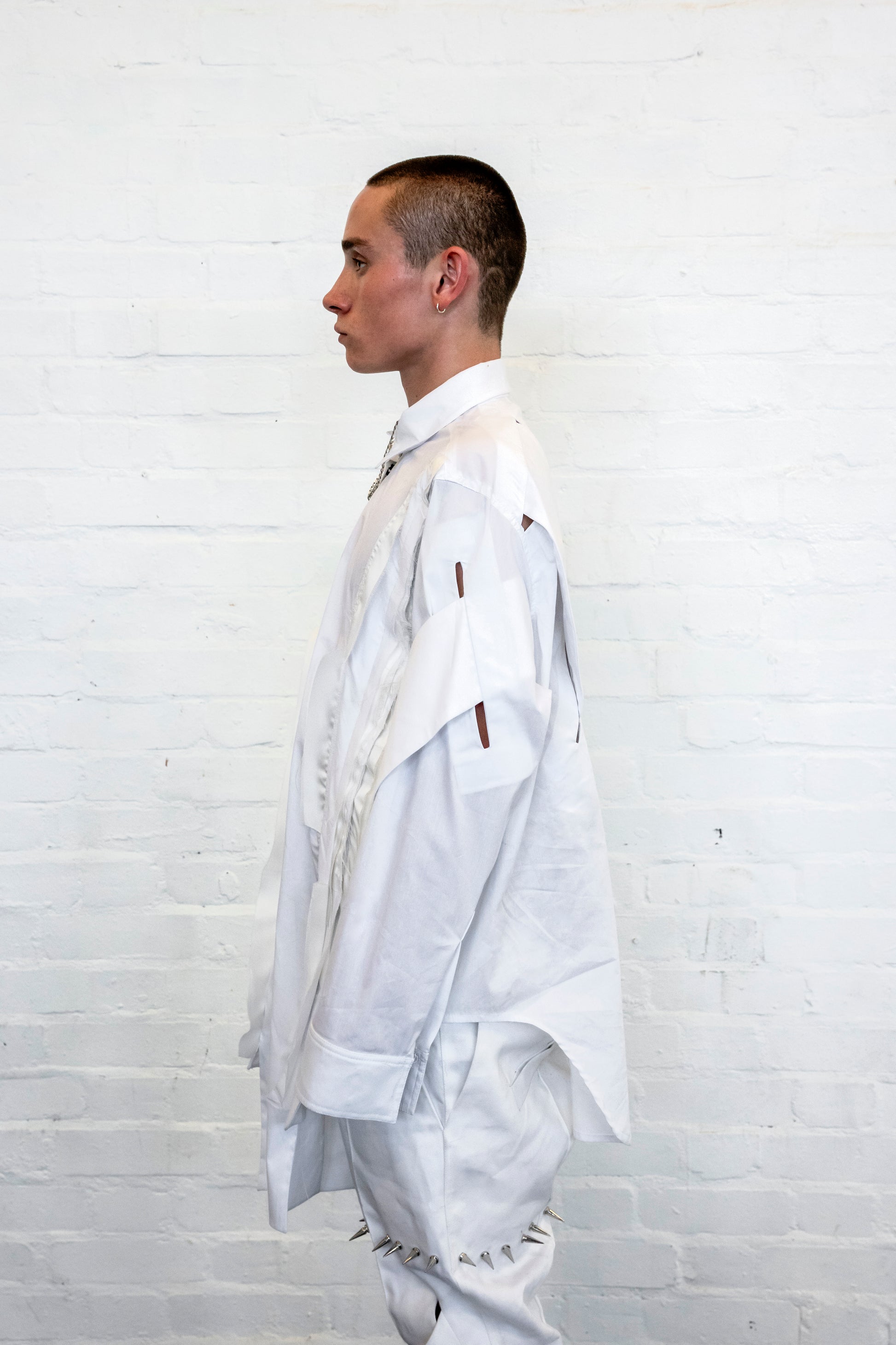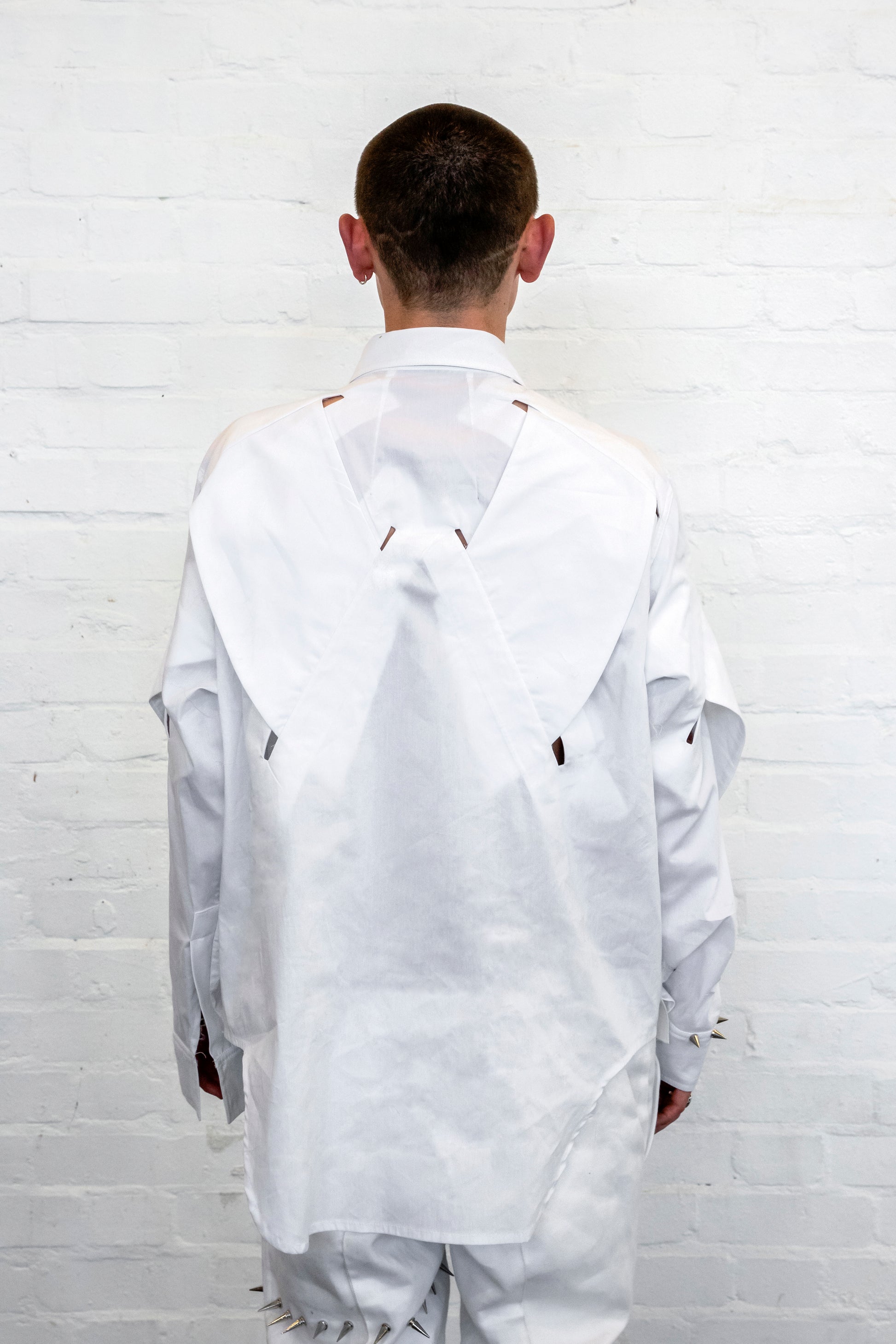 WHITE COTTON POPLIN SHIRT WITH DETAILED FRONT AND BACK AND SILVER SPIKES