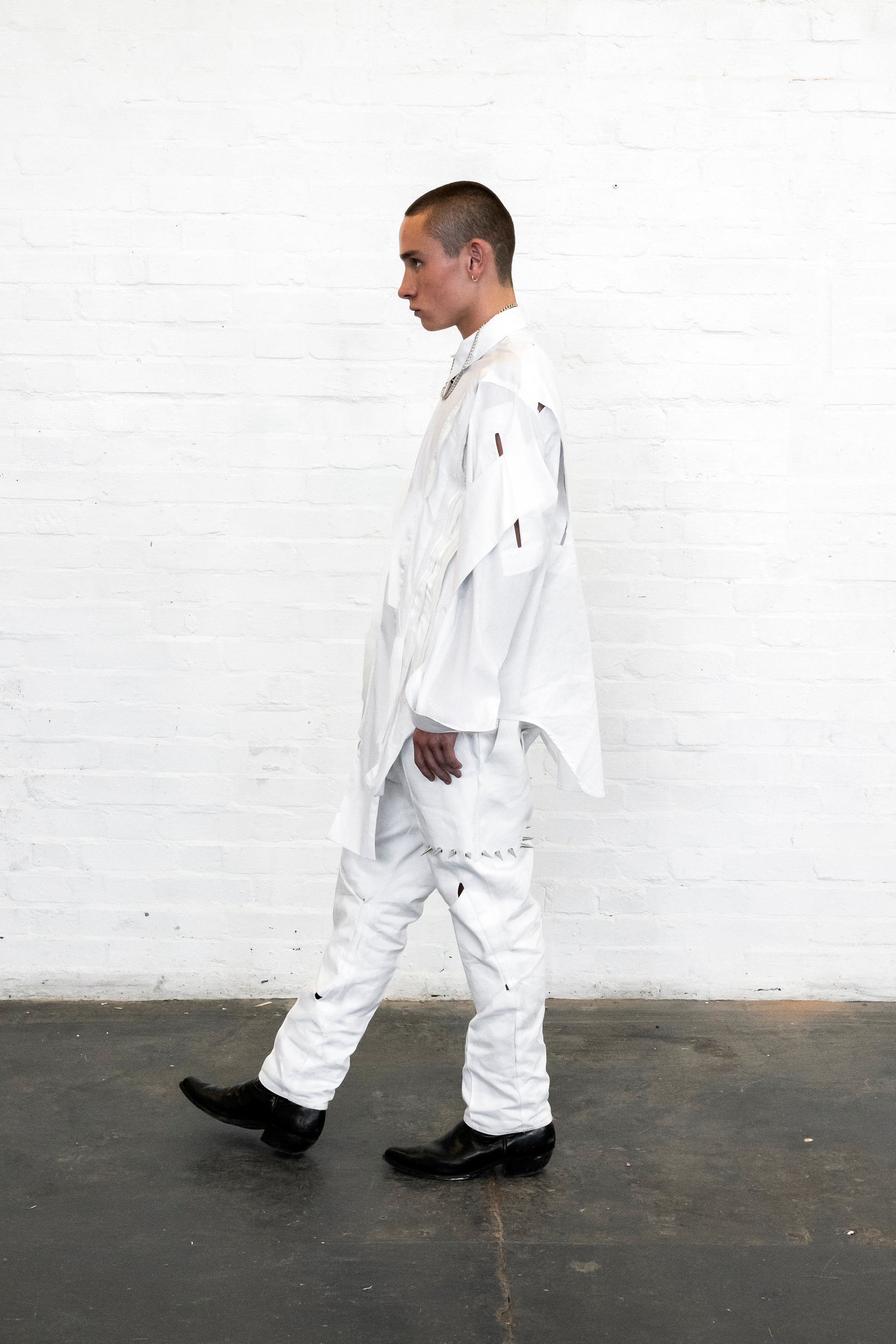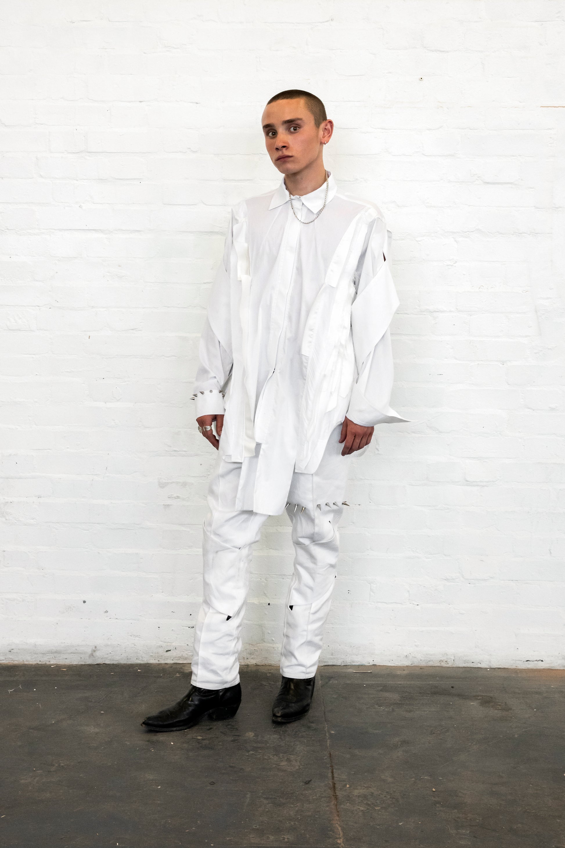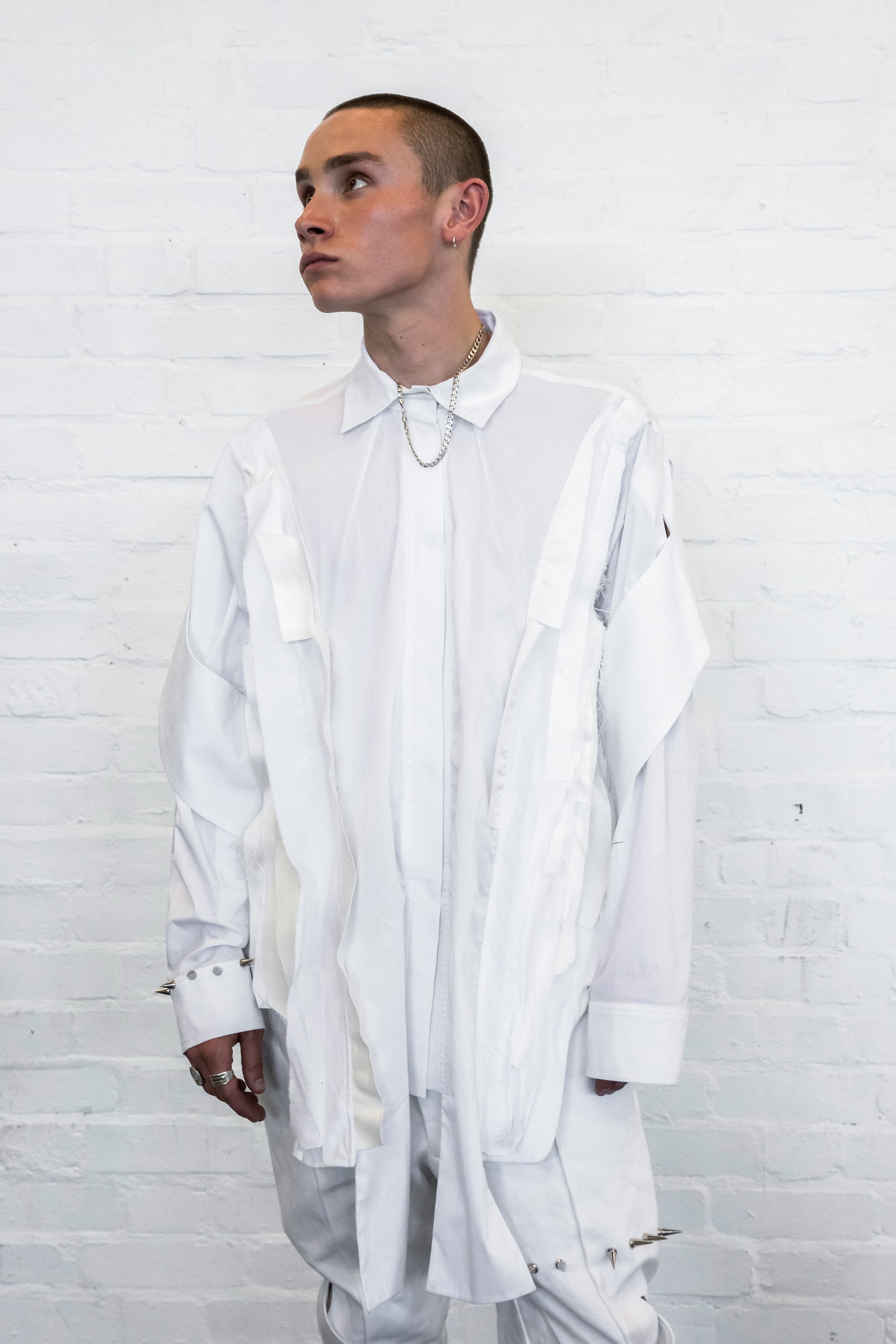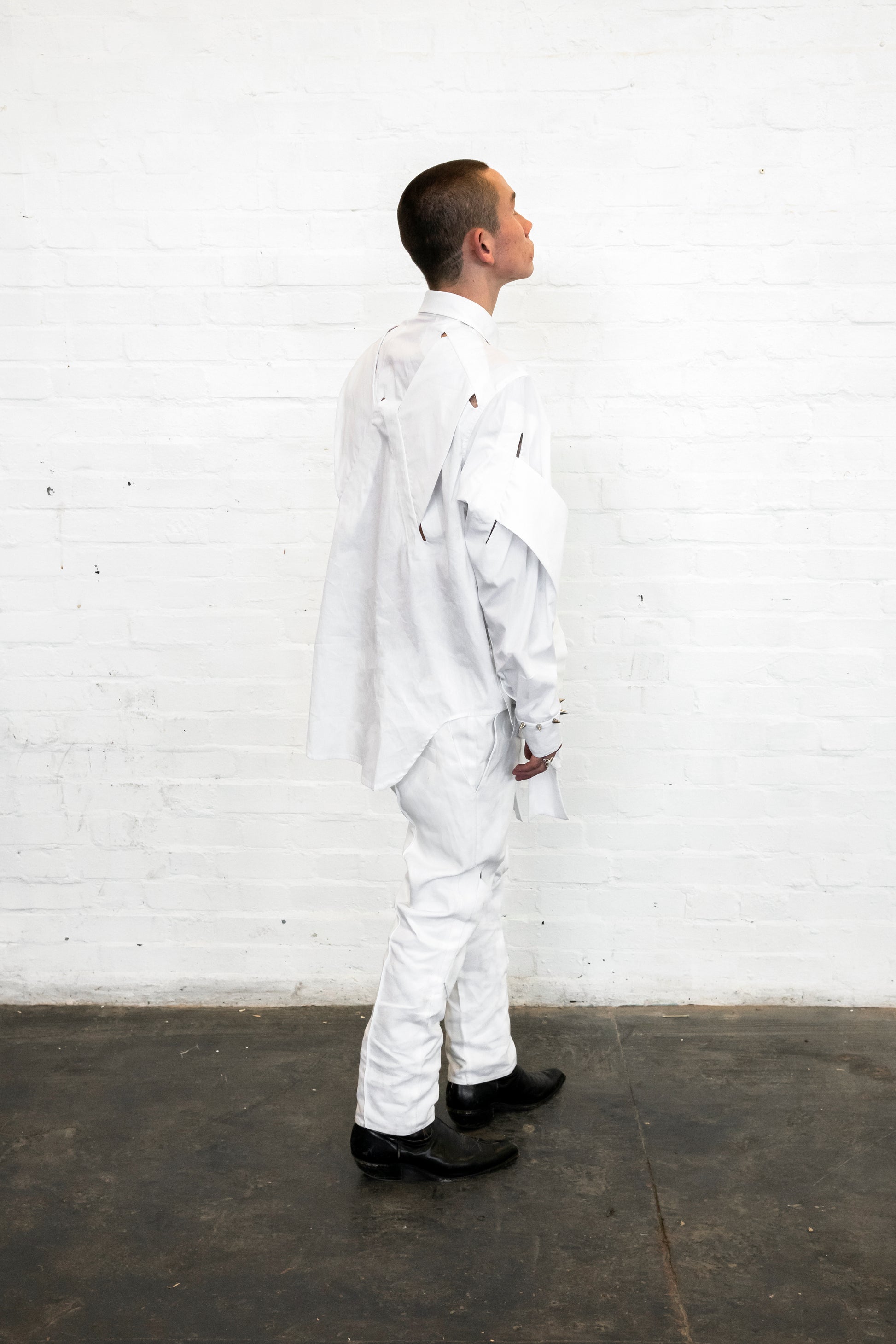 WHITE COTTON POPLIN SHIRT WITH DETAILED FRONT AND BACK AND SILVER SPIKES