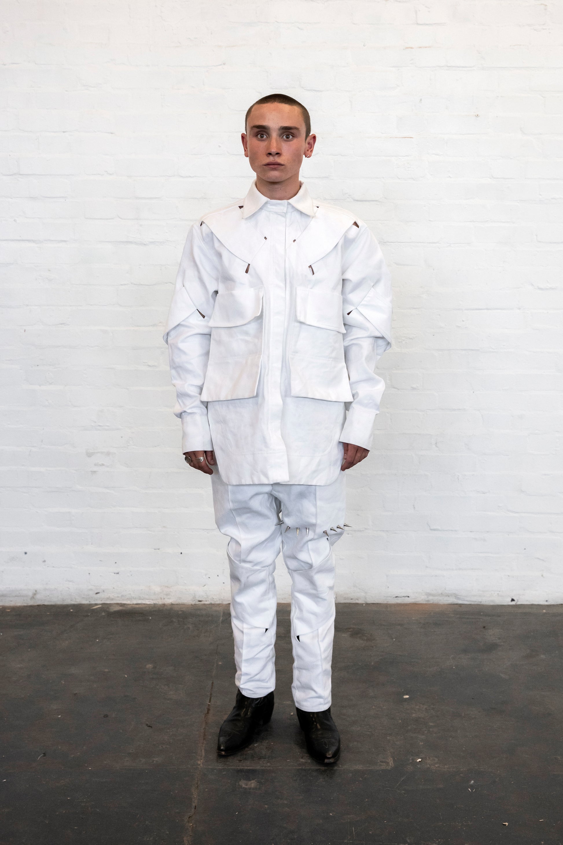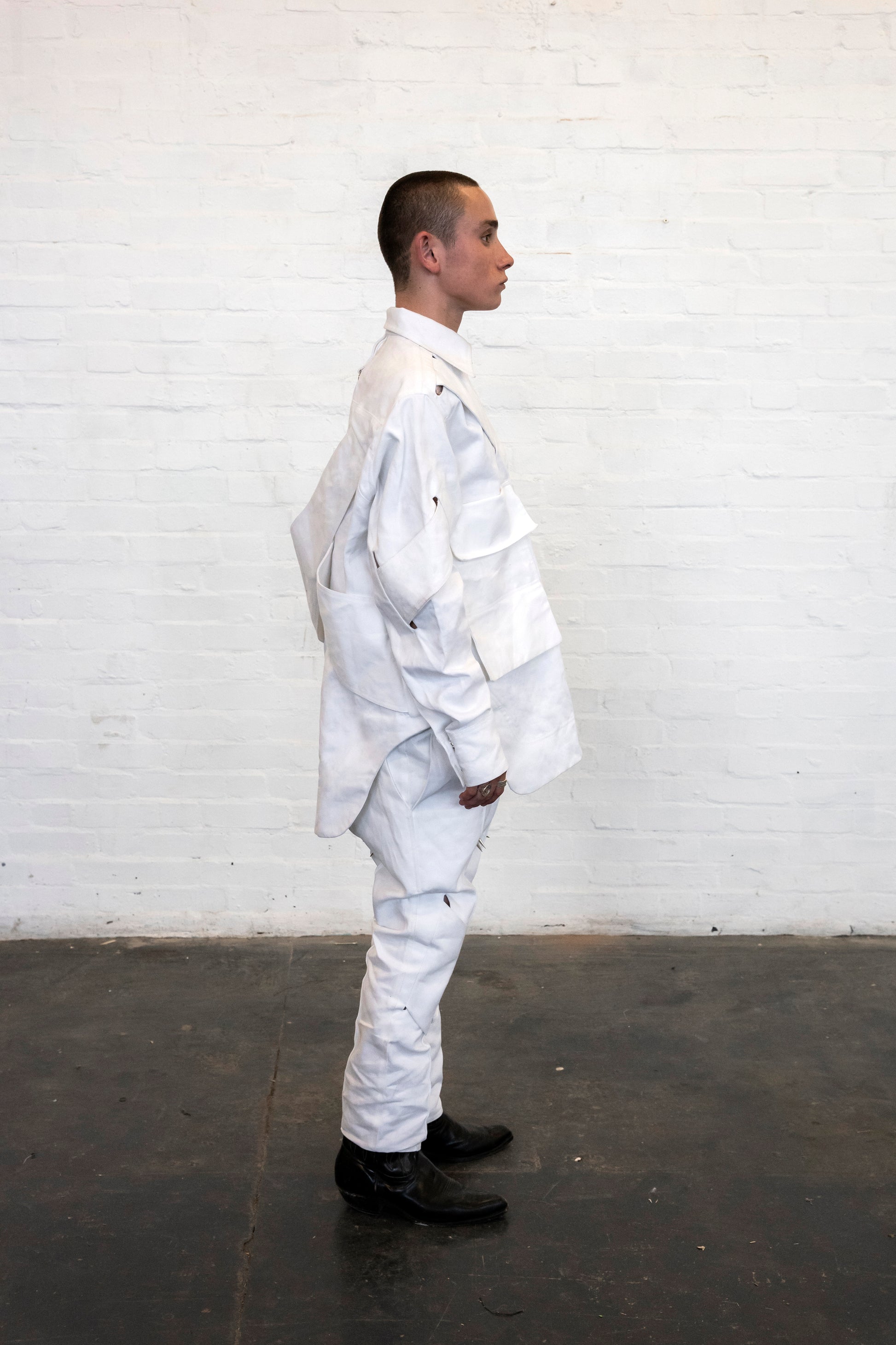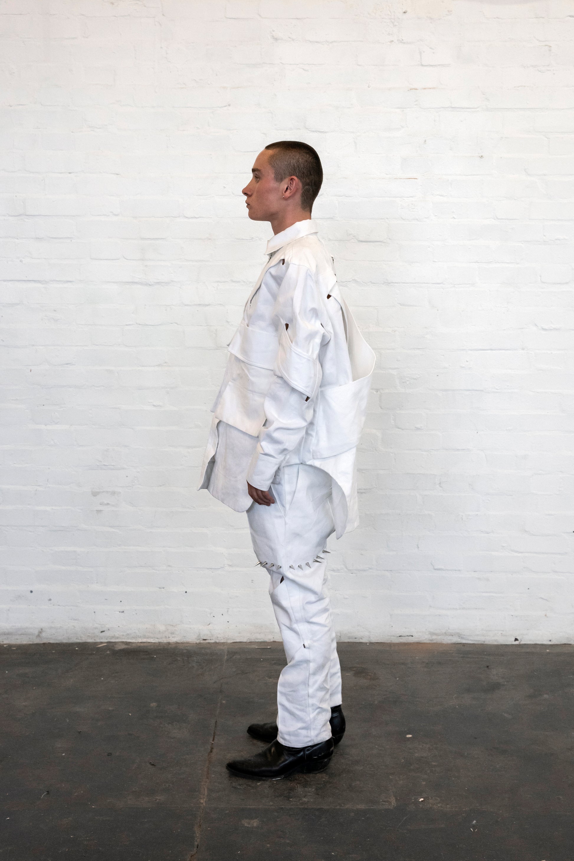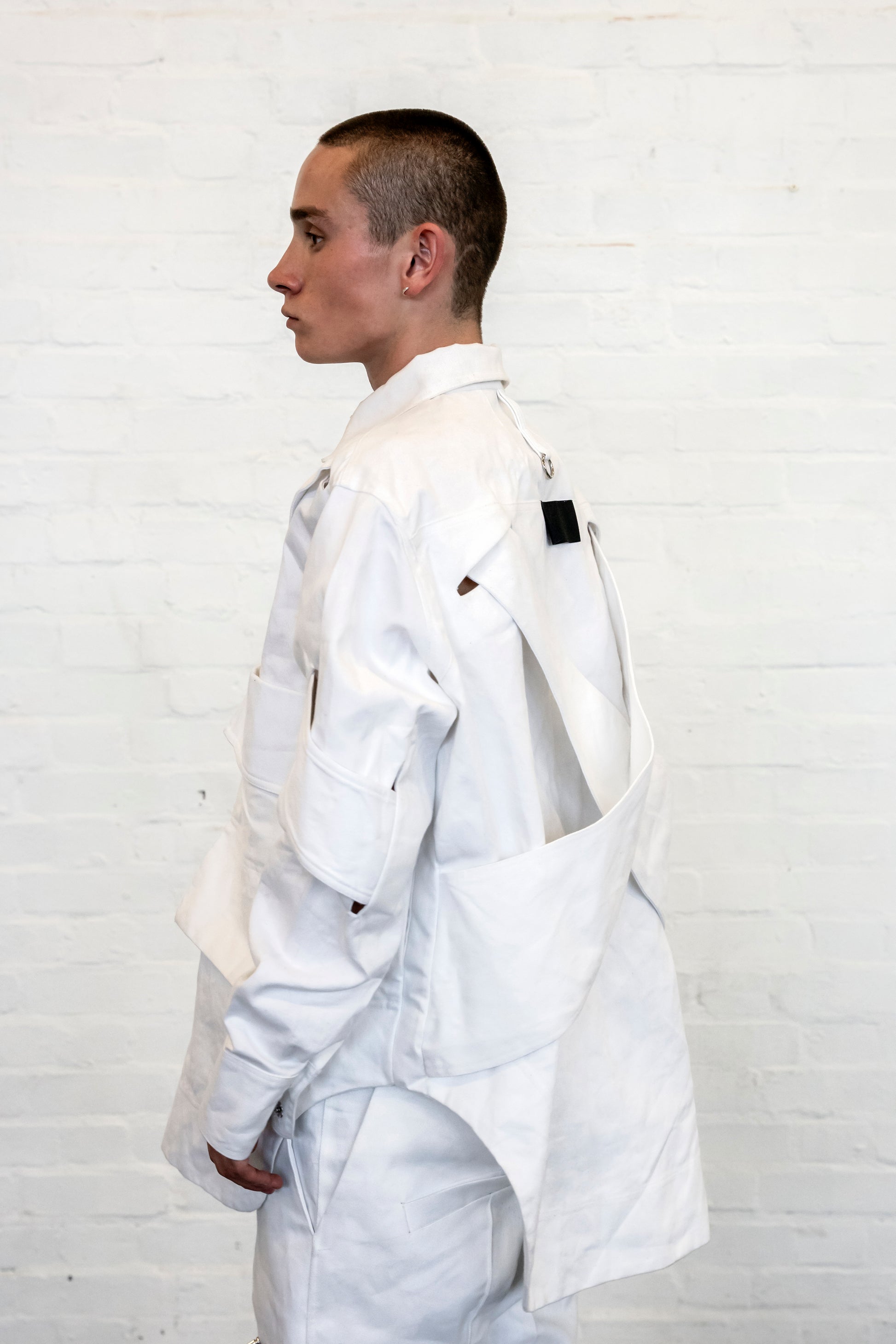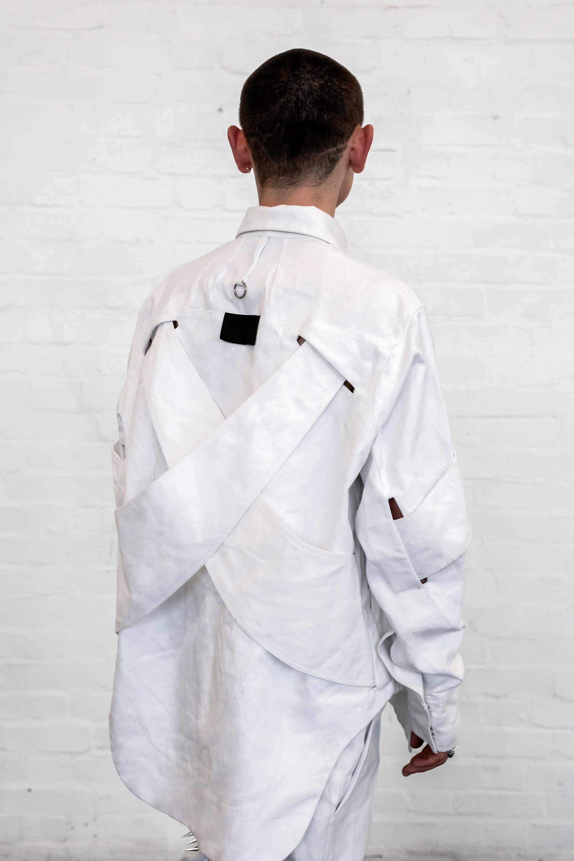 White Hard Denim Shirt with Cross Panels and Large front pockets
